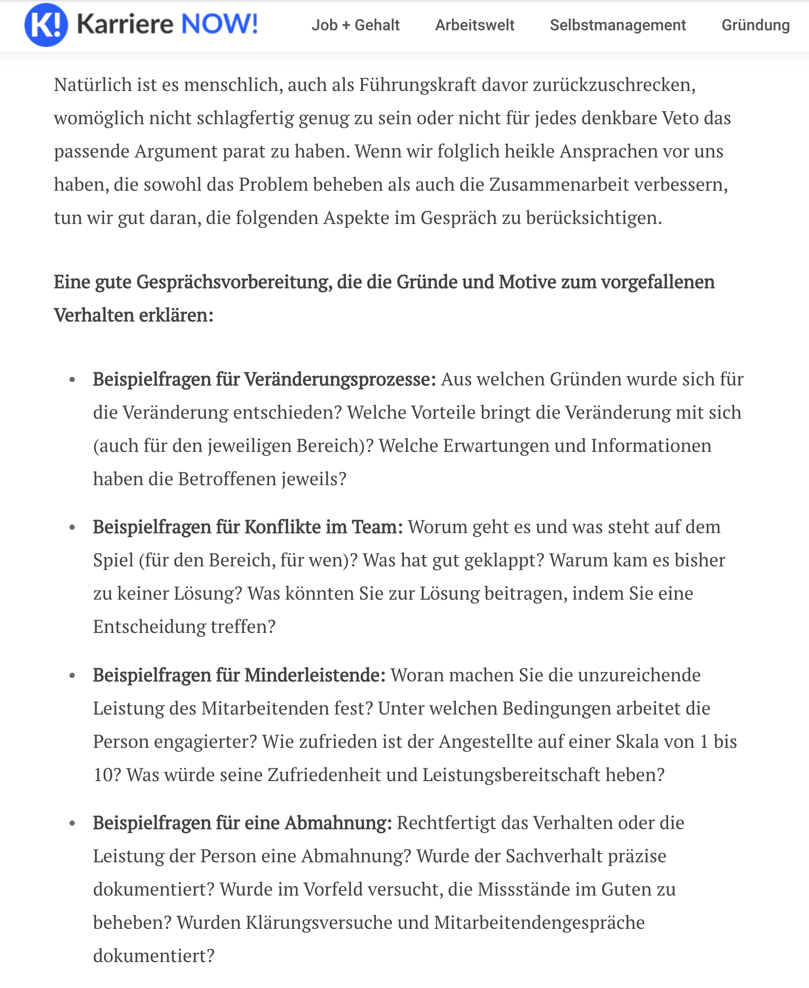 Im Interview mit Karriere NOW! durfte ich beantworten, wie man sich in Konflikten annähern kann und Missstände unter Kollegen souverän anspricht.